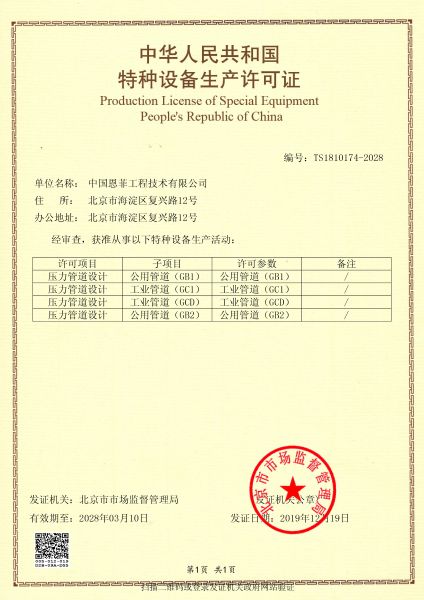 中華人民共和國(guó)特種設(shè)備生產(chǎn)許可證(壓力管道)
