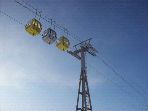 2004年11月8日一次試車成功, 2004年12月2日通過國家和地方有關(guān)部門的驗(yàn)收,正式交付運(yùn)營。索道位于內(nèi)蒙牙克石市東南約16公里處,型式為單線循環(huán)固定抱索器吊廂組式,線路水平距離2818米,高差287.7米,單向小時(shí)運(yùn)量300人。